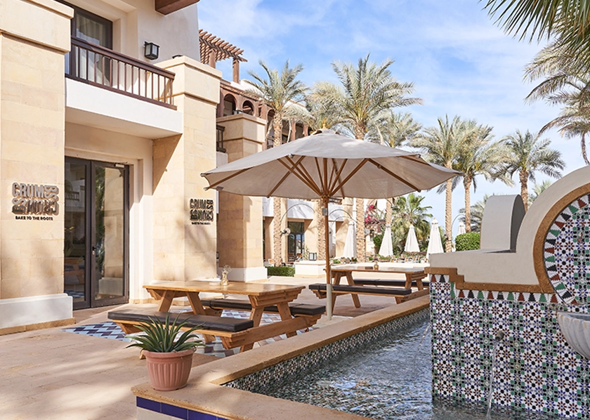 Follow your nose to Crumbs Cafe and the enticing aroma of freshly baked goods. This cosy cafe has glorious views of El Gouna and is a delightful spot for fresh coffee and cakes or handcrafted cocktails and light snacks. There’s a great range of vegetarian and vegan options and delicious sourdough.
