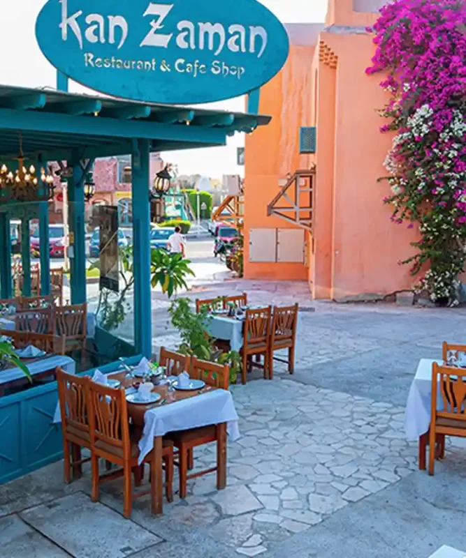 Kan Zaman Restaurant in El Gouna’s Downtown area is an authentic Egyptian and Middle Eastern eatery. This homely restaurant serves delicious regional specialities, from savoury kebabs to aromatic falafel. Kan Zaman El Gouna is a popular place for traditional Egyptian breakfast or an indulgent meze.