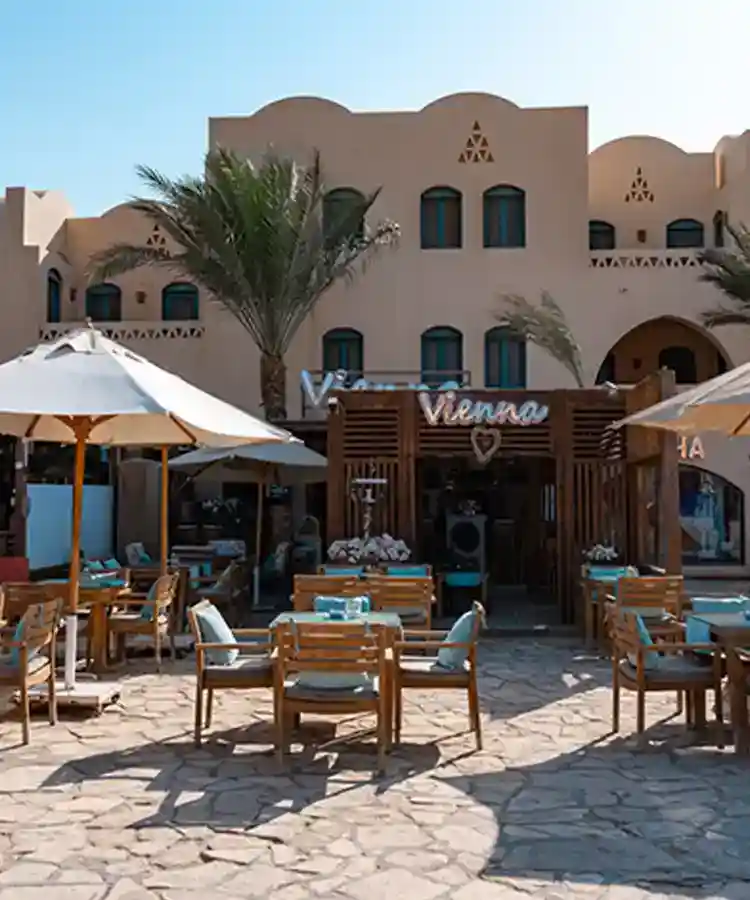 Vienna is a friendly cafe and restaurant in El Gouna Downtown, serving a mixture of international dishes and Austrian comfort food. It’s a relaxed spot for food in El Gouna, including homemade waffles and ice cream.
